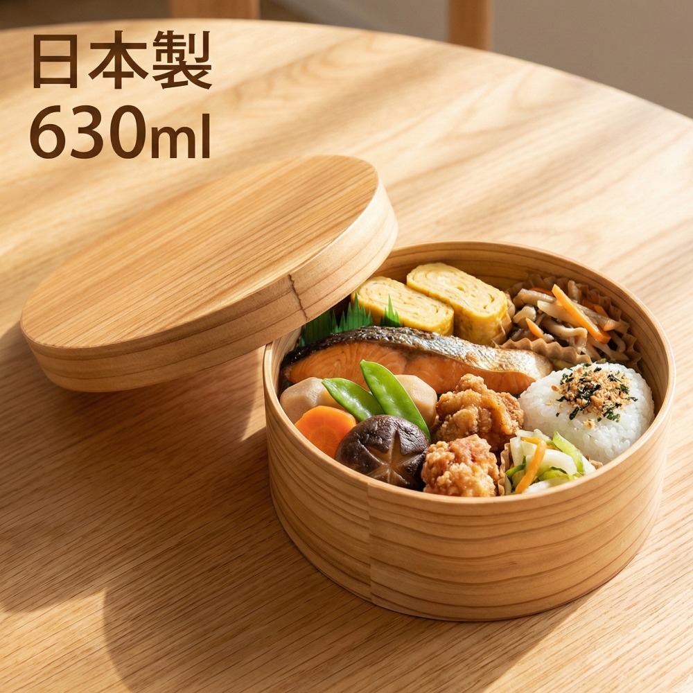 曲げわっぱ 弁当箱 日本製 日本のお弁当箱 丸型 630ml まげわっぱ お弁当箱 男子 女子 男性 一段 おしゃれ 国産 わっぱ弁当箱 ランチボックス