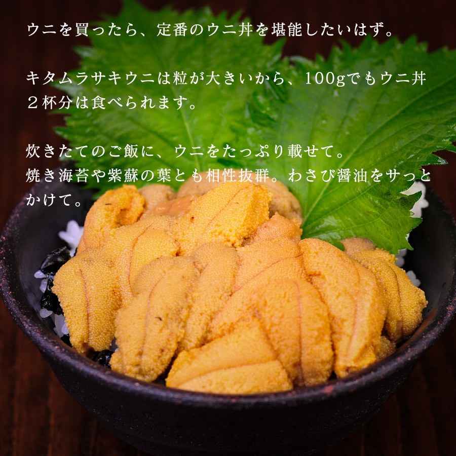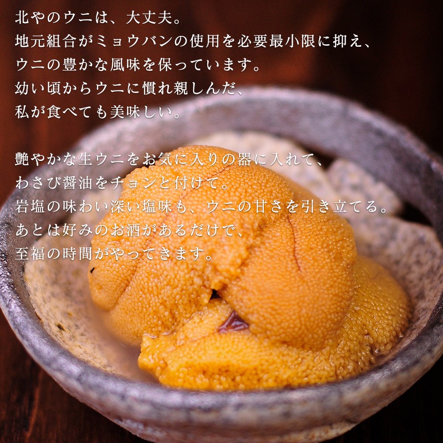 【2023年分終了】北海道産 天然生ウニ100g 宗谷産 利尻昆布を餌に育つ美味しいうに。キタムラサキウニ 時価