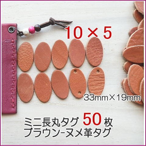 ミニ長丸型50枚ブラウン無地33×19mm/本ヌメ革タグでオリジナル名札・ネームプレート