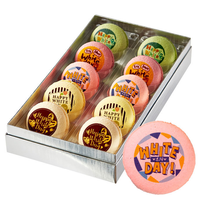 ホワイトデーのプレゼントにぴったりなメッセージマカロンの10個セット。