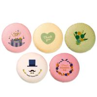 マカロンの表面に可愛いイラストとメッセージがプリントされたマカロンです。