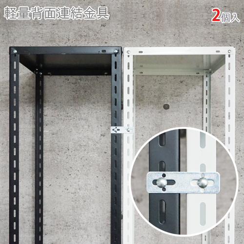 | オススメ ポイント | 背中合わせの軽量棚の支柱を連結する為のパーツです。 地震対策にもなります。 |