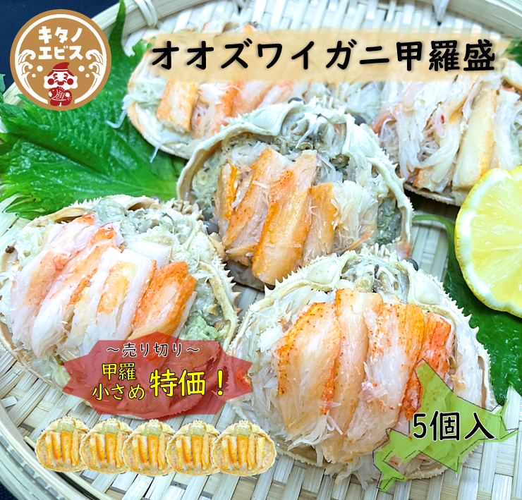 甲羅が小さいだけで内容量は同じの訳あり品オオズワイガニ甲羅盛5個セット 売り切りなので数量限定のお買い得品です