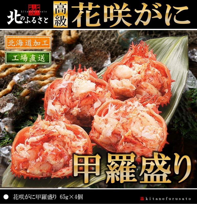 北のふるさと 花咲がに 甲羅盛り セット ( 65g × 4個 ) 化粧箱入り ギフト 贈答品 贈り物 むき身 蟹 カニ かに 豪華 人気 セット 花咲ガニ 甲羅