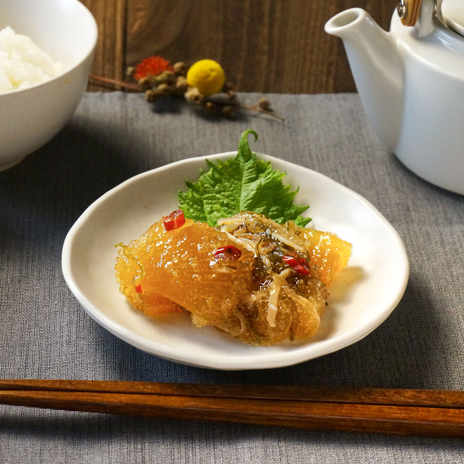 | 栄養成分(100g当り) | 熱量:126kcal、たんぱく質:13.6g、脂質:2.0g、炭水化物:13.7g、食塩相当量:3.6g(推定値) |