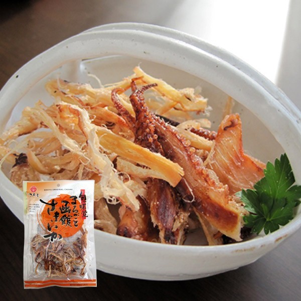 | 原材料名 | いか(北海道産)、砂糖、食塩、乳糖、デキストリン、還元麦芽糖水あめ、還元でん粉糖化物、大豆食物繊維、でん粉、醸造酢、植物たん白加水分解物、貝エキス/ソルビトール、調味料(アミノ酸等)、酸味料、グリセリン、リン酸塩(Na)、保存料(ソルビン酸K)、甘味料(ステビア、カンゾウ)、(一部にいか・乳成分・大豆・小麦を含む) |
