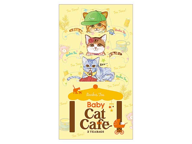 渋みがなくすっきりとした味わいのルイボスティー。ノンカフェインなので小さいお子様がいるご家庭でも安心してお飲みいただけます。コップにかけられるネコ型ティーバッグ「キャットカフェ」の子ネコたちです。プレゼントにもおすすめです。