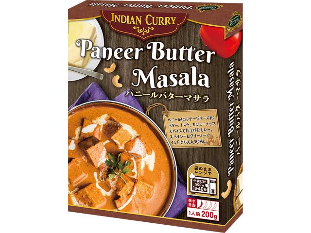 原材料名 トマト、玉ねぎ、カッテージチーズ、カシューナッツ、植物油脂、クリーム、しょうが、にんにく、食塩、バター、砂糖、ガラムマサラ、コリアンダー、唐辛子、クミン、フェネグリークリーフ、カルダモン、クローブ、ベイリーフ/パプリカ色素、(一部に乳成分・カシューナッツを含む)