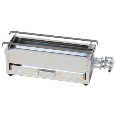 串打ちした鶏などの炙り焼きに適した、横長形状のグリルコンロです。