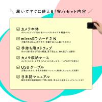 SDカードは贅沢に2枚セット。日本語マニュアルやストラップも付いているから、準備は何もいりません。箱を開けたその瞬間から、お子様の自由な視点で、あるいはあなたの新しい趣味として、世界を切り取り始められます。