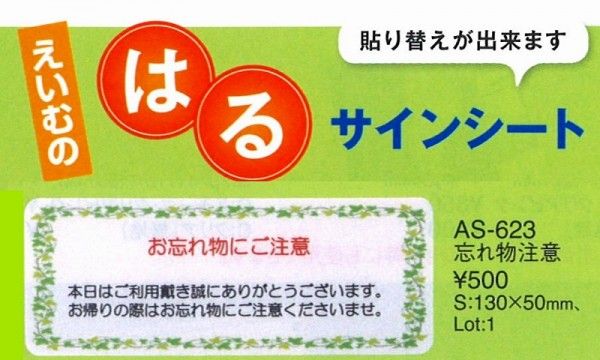 注意シート AS-623 (張替可能) 1枚入り (えいむ)