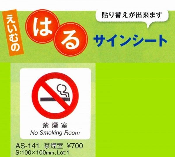 エイム 注意シート AS-141 (張替可能)禁煙室 1枚入り (えいむ)