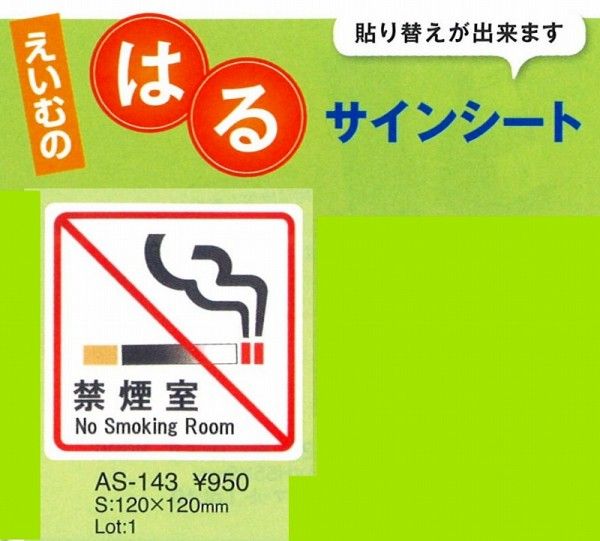 エイム 注意シート AS-143 (張替可能)禁煙室 1枚入り (えいむ)