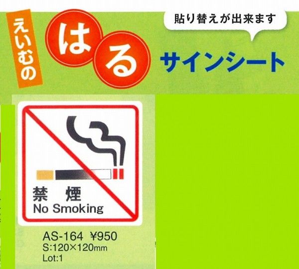エイム 注意シート AS-164 (張替可能) 禁煙 1枚入り (えいむ)
