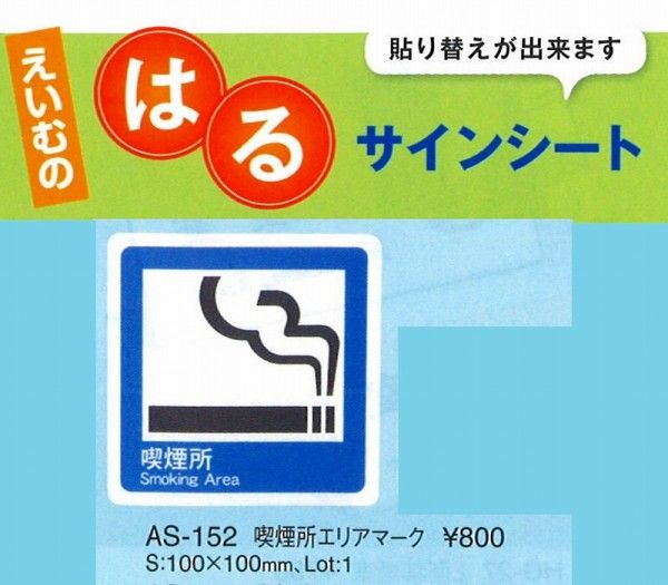 えいむ エイム 注意シート AS-152 (張替可能) 1枚入り 喫煙所