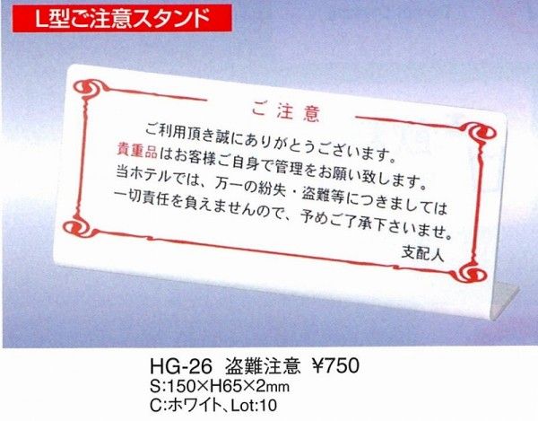えいむ エイム 注意スタンド HG-26 白 盗難注意