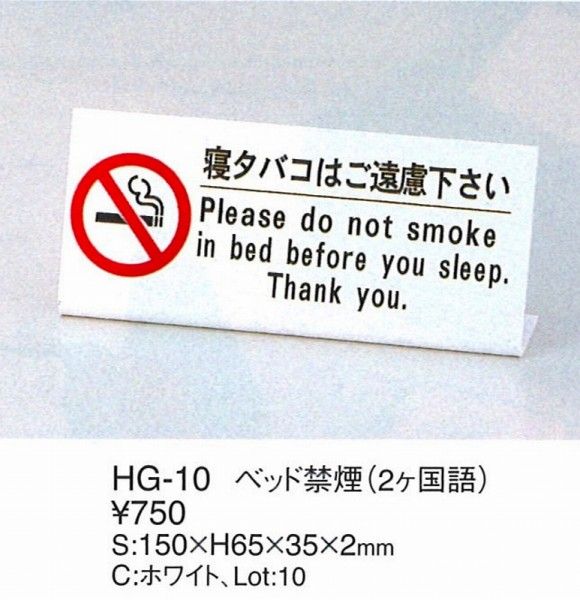 えいむ エイム 注意スタンド HG-10 ホワイト 寝たばこ 2か国語