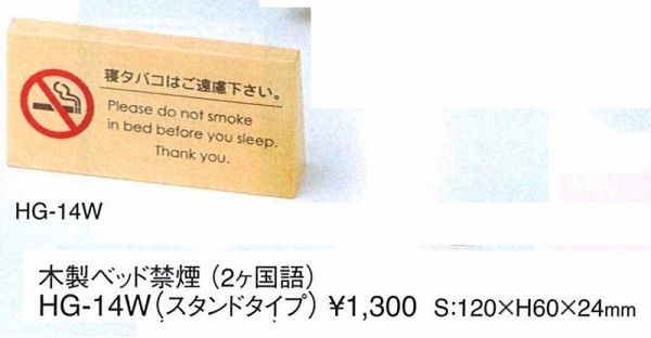 えいむ エイム 注意スタンド 木製 HG-14W スタンドタイプ 白木塗装仕上げ ベッド禁煙