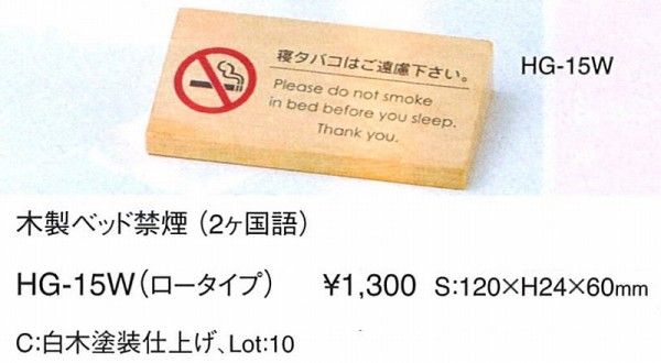 えいむ エイム 注意スタンド 木製 HG-15W ロータイプ 白木塗装仕上げ ベッド禁煙