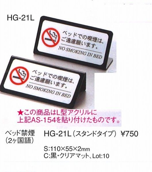 えいむ エイム 注意スタンド HG-21L クリアマット ベッド禁煙 2か国語