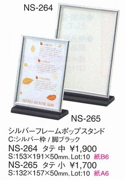 エイム POPスタンド シルバーフレームPOPスタンド NS-264 タテ 中 えいむ