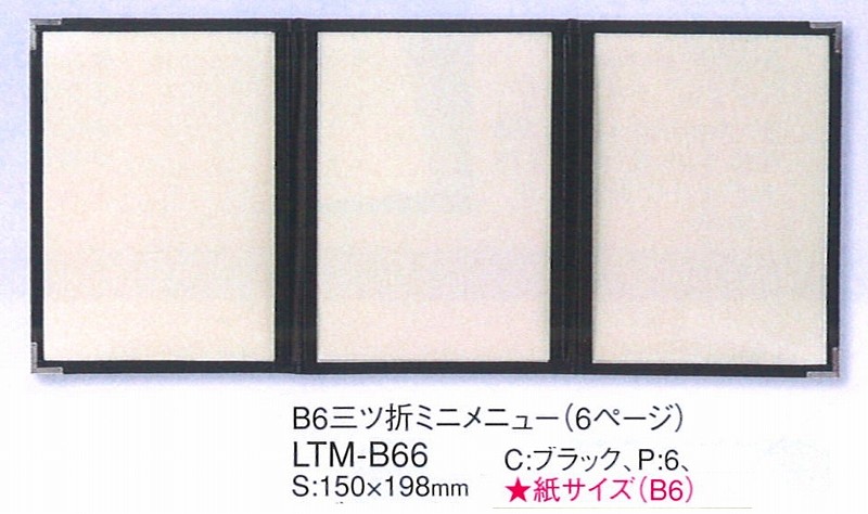 メニューブック えいむ A6三ツ折ミニメニュー(6ページ)LTM-B66 ブラック