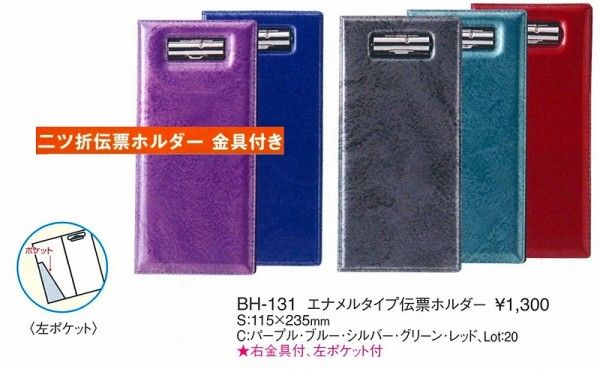 伝票ホルダー 伝票バインダー BH-131 二つ折り金具付 エナメルタイプ伝票ホルダー パープル (えいむ)