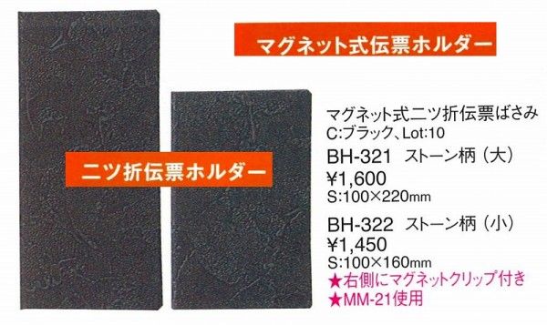 伝票ホルダー 伝票バインダー BH-321(大)二つ折りマグネット式 ストーン柄伝票ばさみ ブラック (えいむ)