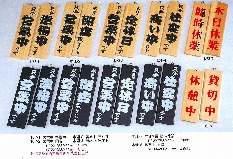 店頭 案内プレート 木理-3 えいむ 案内用品 営業中・定休日 白木