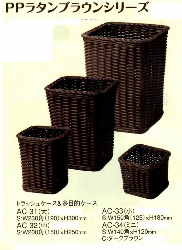 四角トラッシュケース PPラタン ゴミ箱 AC-33 小 ダークブラウン えいむ