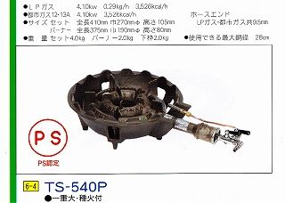 タチバナ ガスバーナー JIA認証 PS認定 鋳物コンロ TS-540P(一重大、種火付) LPガス・都市ガス12A.13A共用