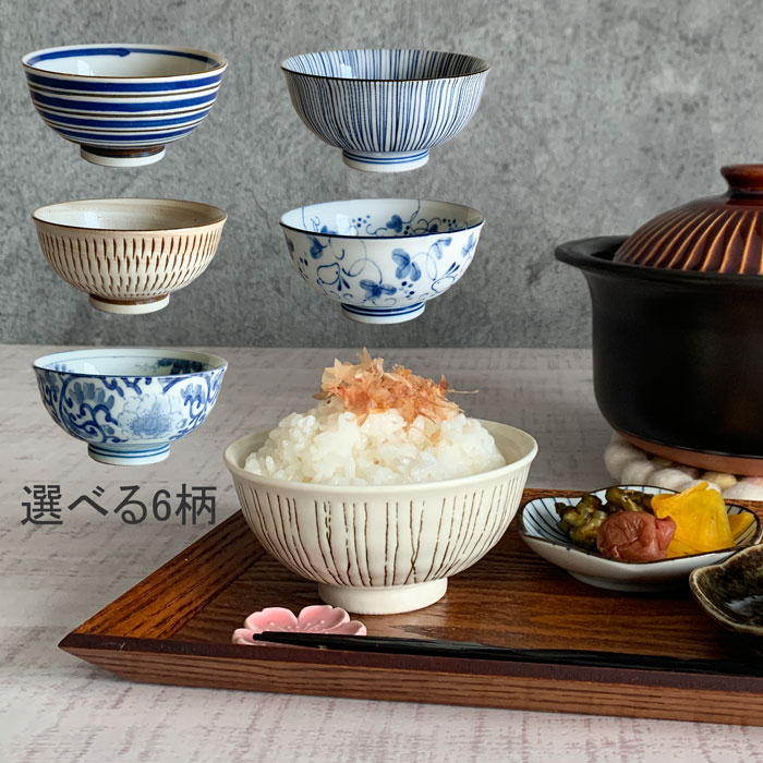 選べる6柄!食卓の雰囲気に合わせて自分好みのご飯茶碗をお選びいただけます。また、深さがあるので汁気のある煮物やサラダを盛ってもステキです。