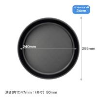 | ケーキ型:SIZE(24cm) | 内寸(外寸)単位:mm 直径240(255)×深さ47(50) 重さ:195g |