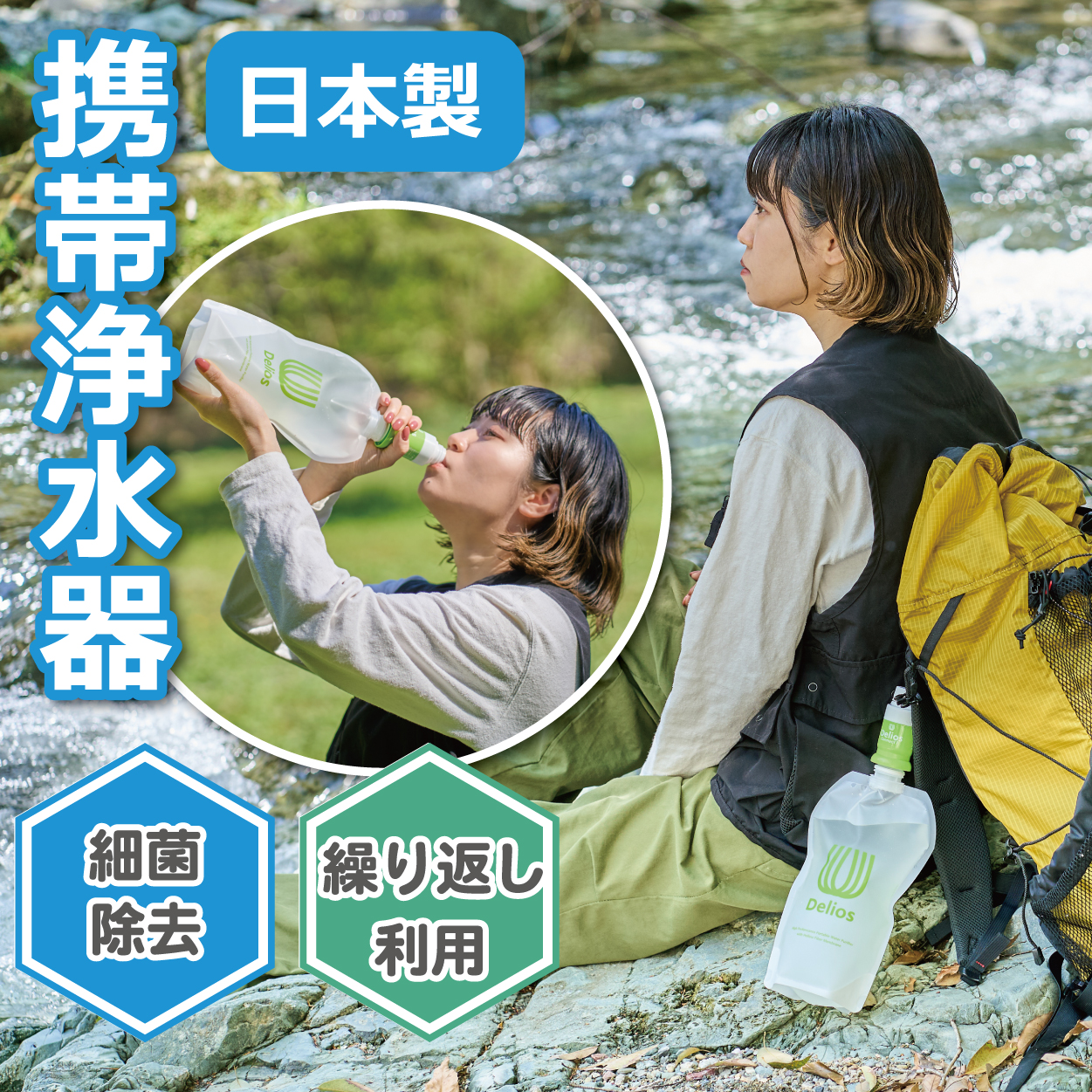 日本製|携帯浄水器デリオス【コネクト1&ウォーターパック1.2L】繰り返し利用【防災士推奨】水ろ過 細菌除去 防災グッズ 避難グッズ 災害 キャンプ 浄水器 災害