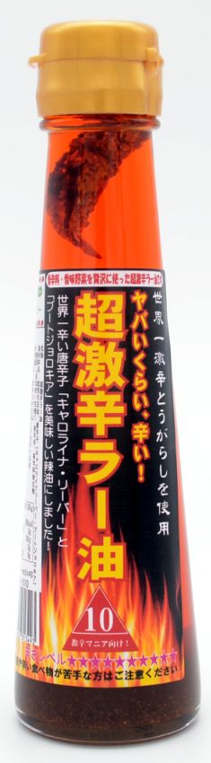 食用大豆油、唐辛子(キャロライナ―リーパー・ブートジョロキア)、野菜(長ねぎ・生姜)、香辛料、香辛料抽出物