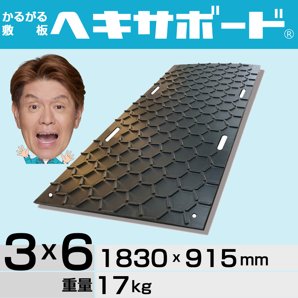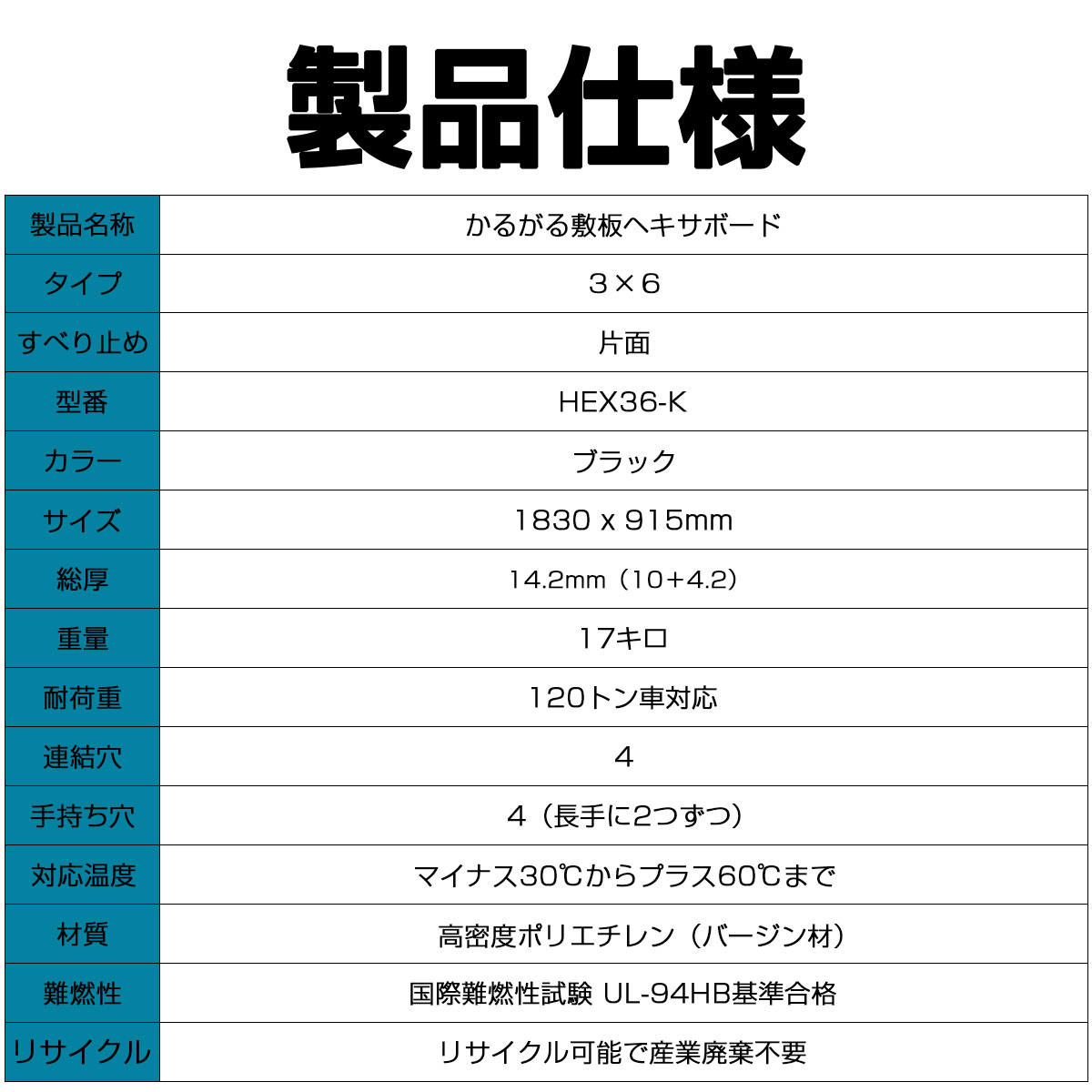 かるがる敷板ヘキサボード HEX36-K プラスチック敷板 プラシキ 樹脂敷板 高密度ポリエチレン 120t車対応 軽量17kg 極寒地・酷暑対応 建設現場 農業現場