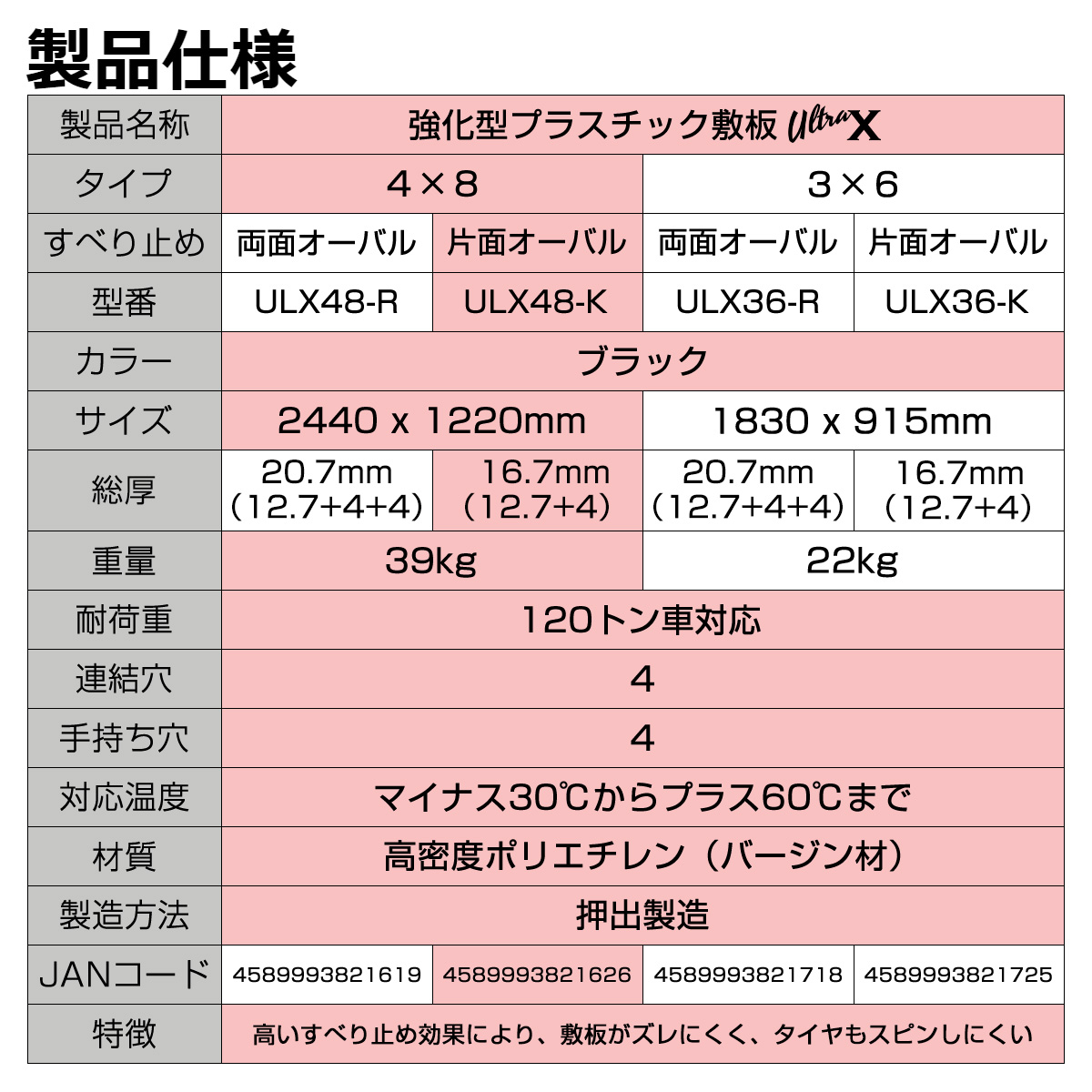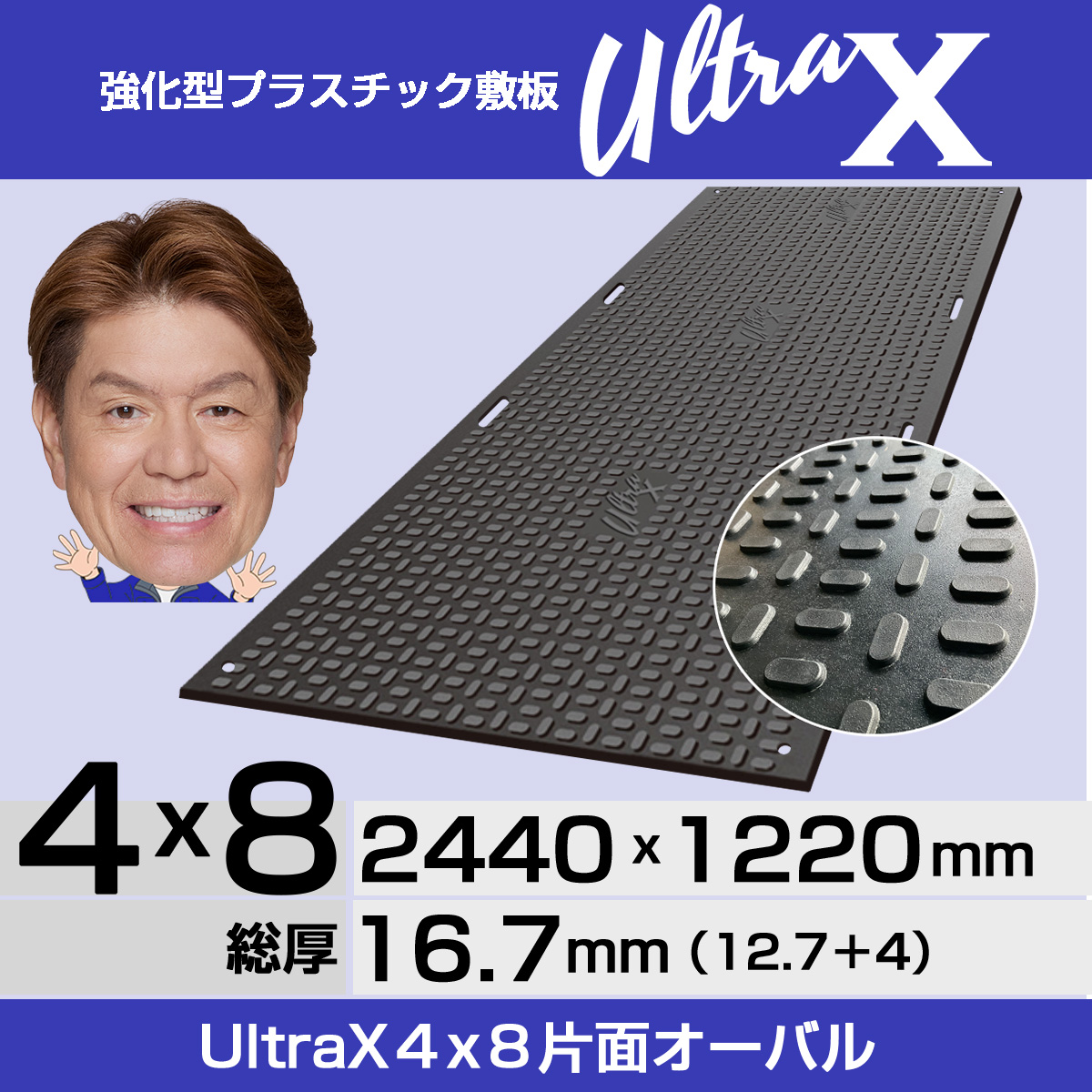 強化型プラスチック敷板UltraX4×8片面 オーバル ULX48-K 超硬質 120トン車対応工事現場 地盤養生 樹脂敷板 樹脂製敷板 プラスチック製敷板 プラ敷き
