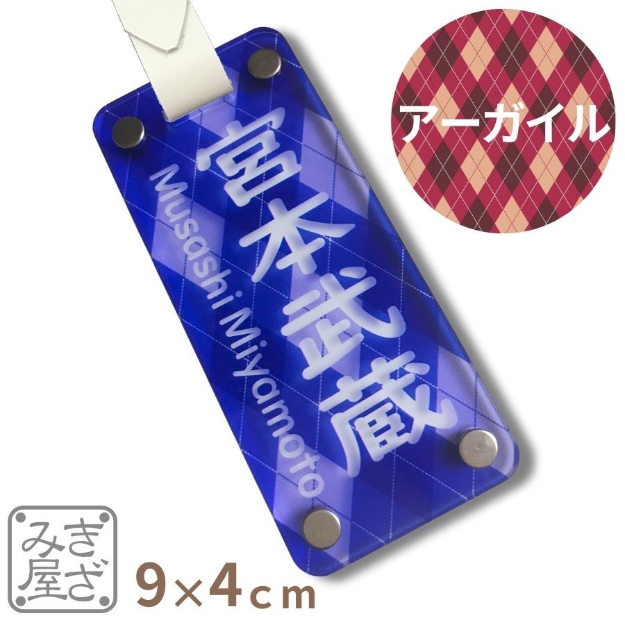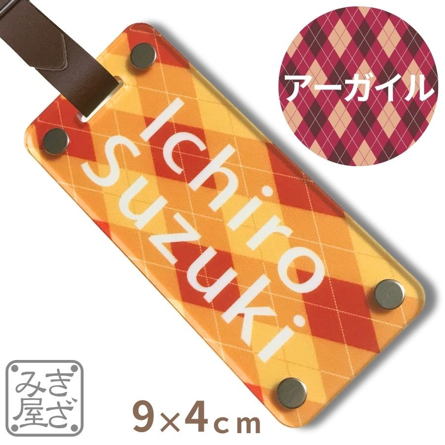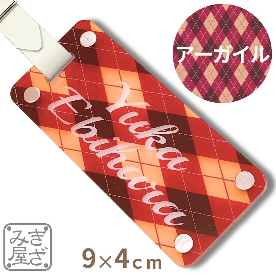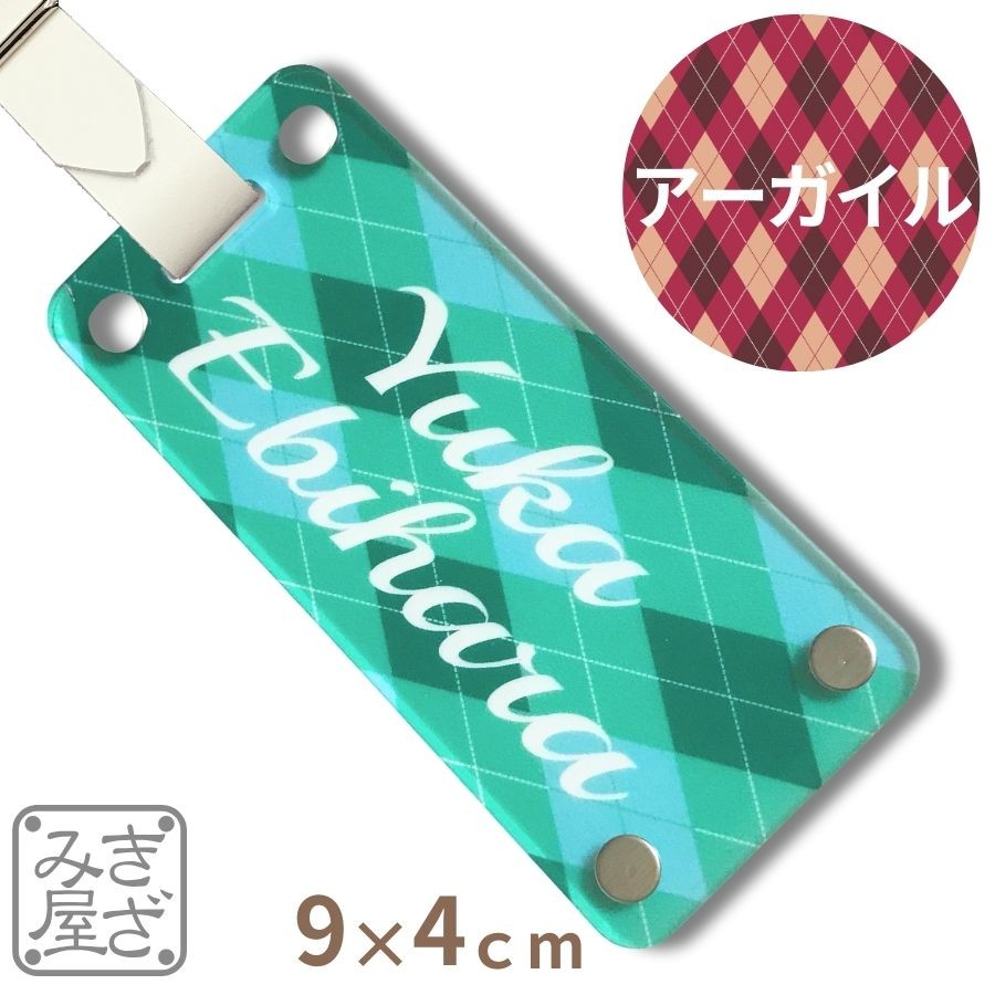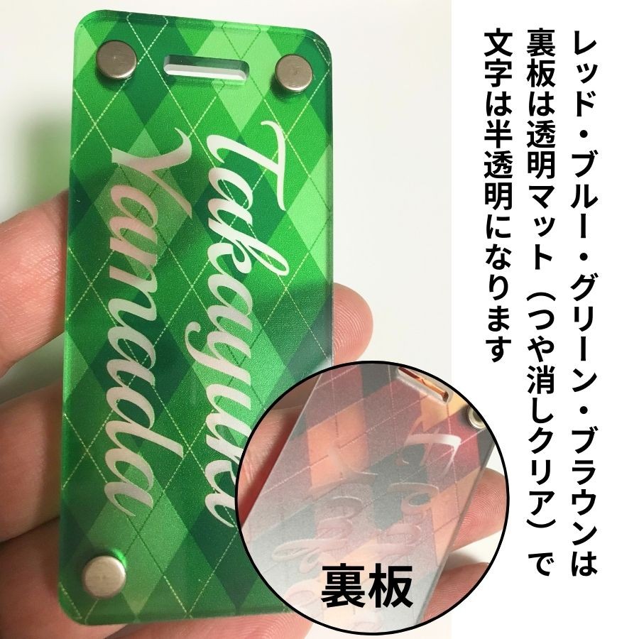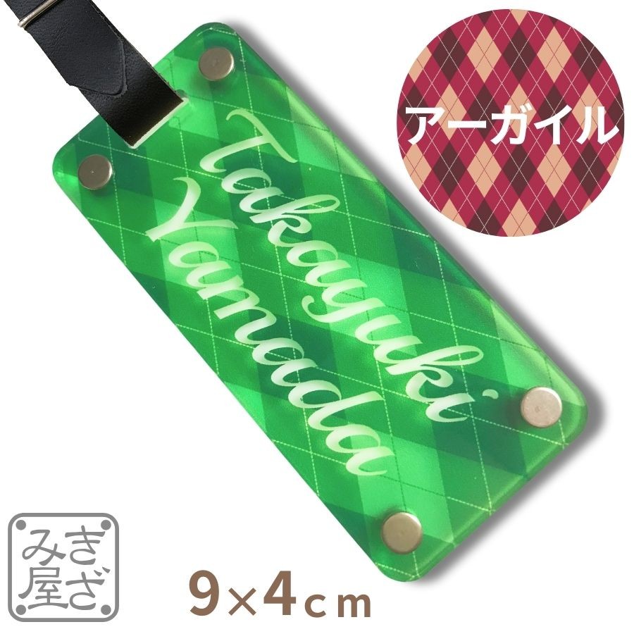 ゴルフ ネームプレート 名入れ 高級 90×40mm アーガイル グロス カラー 新素材 目立つ キャディバッグ バッグタグ ネームタグ