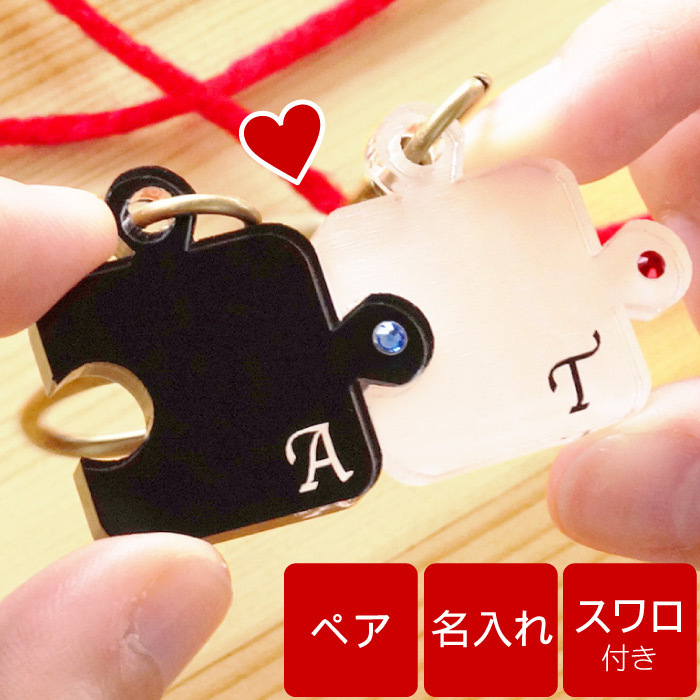 【 名入れOK! ふたりの秘密のパズル ペアパズルキーホルダー 】 ■お互い足りないところをパズルのように埋め合える、そんなふたりにぴったり 実際に組み合わせられるパズル型キーホルダー♪ アクセサリーなど、いかにもペア!は苦手…というカップルにオススメ! さりげないペア感が◎ 鍵などいつも使うものにつけるとこっそりおそろいでいつも一緒にいるみたい 誕生石カラーのスワロ付きでおしゃれ♪ 彼氏・彼女でおソロイで持てちゃうペア★ ふたりのイニシャルと12色のスワロで2人だけのスペシャルな宝物に♪ ■名入れで、オリジナルの特別なプレゼントに。 さりげない彫刻の、ペアパズルキーホルダーは カップルやお友達同士で、お誕生日や記念日のプレゼントに! クリスマスやバレンタイン、ホワイトデーのプレゼントにも♪ 記念品など、ちょっとした贈り物にも! 名前を入れて世界に一つのプレゼント! | |