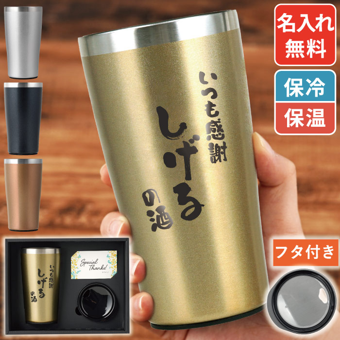 | 【名入れOK! 真空断熱 ステンレス タンブラー 450ml 】 ■お名前とメッセージを刻んで、気持ち伝わるタンブラー♪ フリーメッセージ対応!伝えたいメッセージを自由に彫刻♪ 真空断熱二重構造だから、 冷たいものは冷たいまま、温かいものは温かいまま 飲み頃温度を長時間保ちます。 350mlの缶ビールが泡までぴったり入る、450mlのタップリ大容量! メッセージカード付きでさらに気持ち伝わる♪ ■オリジナルで特別なギフト、プレゼントに! 真空断熱 ステンレスタンブラー は、父の日ギフトや、 お父さんやお酒好きな男性への誕生日プレゼントに♪ 名入れで世界にひとつのプレゼント! | |