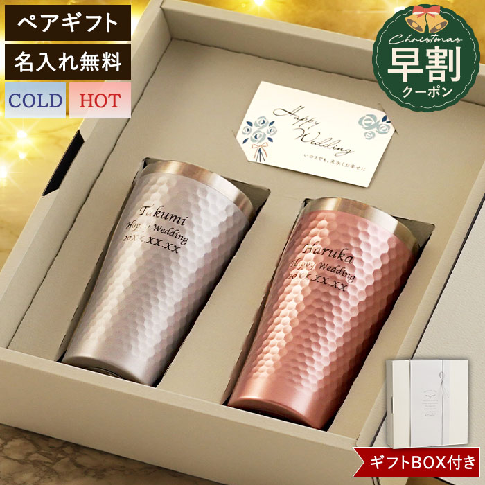 | 【 ダイアナ サーモタンブラーペア 370ml 】 ステンレスだから軽く、丈夫で長持ち。 内側と外側の間は、ステンレスの二重構造になり真空構造になっています。 熱が外に伝わりにくいので、温かいものは温かいまま、冷たいものは冷たいままをキープします。 冷たい飲み物は、結露を防止するためテーブルを濡らさずにコースターも不要。 氷も溶けにくいので、在宅ワーク、読書などの時間にもおすすめです。 大人カラーでシンプルなデザインが人気♪ 結婚祝いや両親の結婚記念日などにピッタリなギフトです◎ 名入れもできるのでさらに特別感が伝わります! 世界に一つだけを贈り物をしませんか? | |