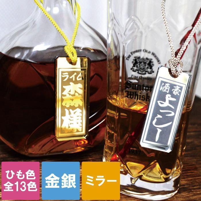 | 【オリジナル名入れギフト】 ★派手でかっこいい金銀ミラーのボトルキーパー★ お店のお客様へのプレゼントに◎ 家飲みでお気に入りのボトルにつけるのもよし! 目立ちたい方にお勧めの鏡面仕様ミラータイプのボトルタグです♪ | |