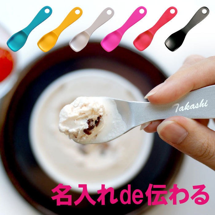 | \ メール便 送料無料! / ホワイトデー お返し に!【 名入れOK! 新潟燕 製 熱伝導アイススプーン 】 ■熱伝導で、もう待たない! 熱伝導性の高いアルミ製だから、カチカチに凍ったアイスクリームも 冷凍庫から出してすぐに食べられちゃう 自分の体温がスプーンの先にじんわり伝わり、ゆっくりスルンとアイスに入っていきます ■安心の日本、made in 燕市(新潟県) アルミニウムを傷、変色、摩擦から防ぐためにアルマイトで表面を保護しています。 安心◎モノづくりのまち、燕市で作られています。 ■名入れで、オリジナルの特別なプレゼントに。 カラバリも豊富♪熱伝導アイススプーンは プチプラだから、家族みんな色違いで揃えても◎ 男性にも大人気の熱伝導スプーンに名入れオーダー 女性への誕生日プレゼント、家族へのサプライズギフト、友人へのプチプレゼントに! 大好きなアイスクリームと一緒に♪ 彼氏や彼女、お父さんやお母さんへも・・ 誕生日や記念日、母の日や父の日の贈り物にも◎ 名前を入れて世界に一つのプレゼント! | |