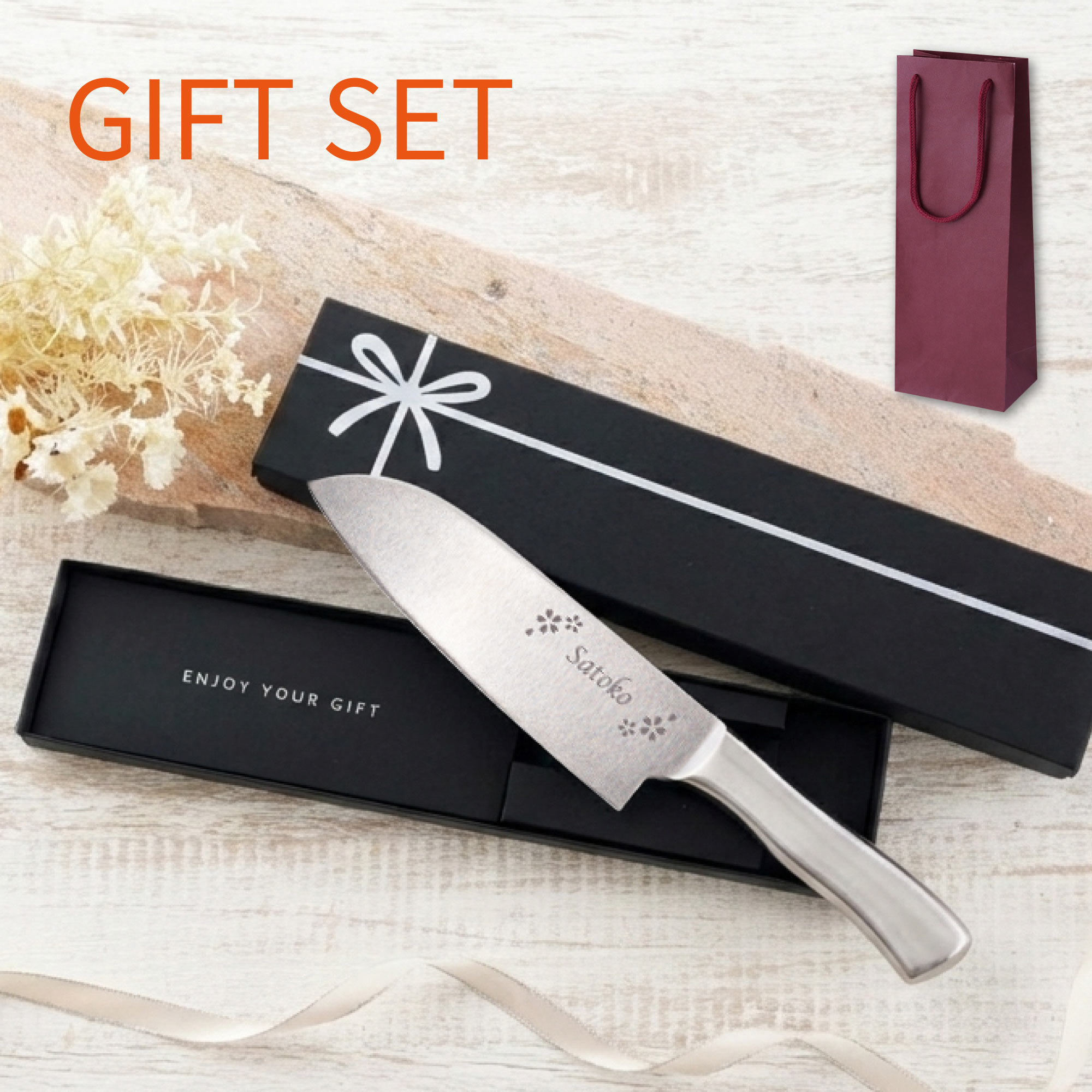 | 【名入れOK! オール ステンレス 三徳包丁 】 ■お母さん、いつもご飯作ってくれてありがとう! これからも美味しい料理たくさん作ってね 毎日献立を考えて作ってるお母さんへの贈物としておすすめ♪ 名前がはいってる包丁だから、 毎日使うお母さんも料理をはりきって作っちゃうかも?! デザインは桜、薔薇、梅の3フレームから選べる♪ 熟練の職人技により、切れ味にこだわった包丁。 手に非常にフィットしやすく握りやすい。 又、柄の中は空洞構造になっているから、軽くて扱いやすい♪ ■オリジナルの特別なプレゼントに。 オールステンレス三徳包丁は、 女性、お母さん、母、おばあちゃん、祖母への プレゼント に! 母の日ギフト、敬老の日、クリスマス、の 贈り物 に 記念日、誕生日、創立記念品、周年記念品、開店祝い、 送別会、送別品、歓迎会、転勤、昇進祝い、栄転祝い、退職祝い、 長寿祝い、還暦、古希、喜寿、米寿のお祝いにも♪ 名入れで世界に一つのプレゼント! | |