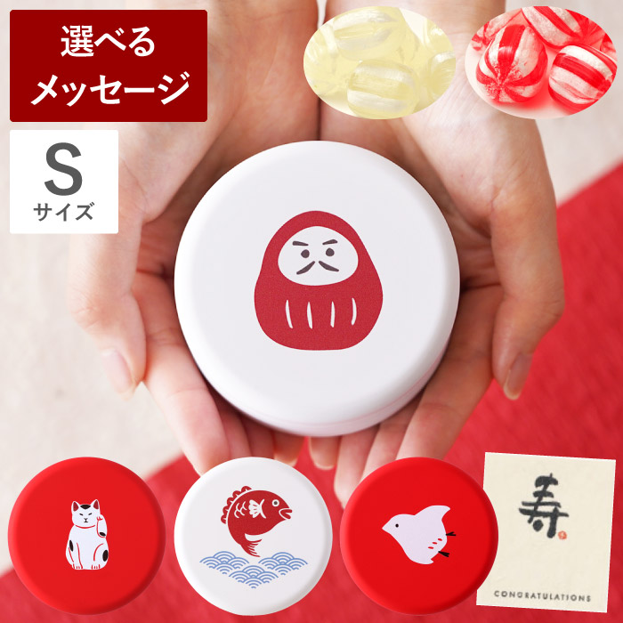 | 縁起柄の缶に 応援の気持ちや祝福をぎゅぎゅっと詰めて! 受験のお守りに♪お祝いごとに♪ 京都の職人さん手作りの紅白飴は 風味豊かなニッキとハッカ味。 てのひらサイズの缶は、 持ち歩けるお守り缶として◎ 気持ちが伝わるように メッセージシールをつけてお届けします。 | |