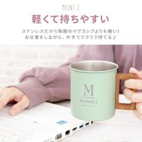 【 名入れ Myマグカップ 】 イニシャルとお名前を彫刻して、世界にひとつのマグカップに♪ ステンレスだから陶器のマグカップより軽く、 お仕事しながら、本を読みながら、片手で持てます! 軽いのに400mlの大容量♪ 何度もコーヒーを入れる手間がなくなります テレワークのお供にぴったり♪ 読書やゆったりくつろぎタイムにもオススメ! 木の取っ手がアクセントになっているシンプルなデザインなのでプレゼントに◎ Myマグカップは、 お友達、彼女、奥様、お母さん、女性への誕生日プレゼント 記念日、結婚祝い、結婚記念日のプレゼントとしてペアで贈っても◎ 新築祝い、引越し祝い、バレンタインのギフトにも! 世界にひとつのプレゼント! | |