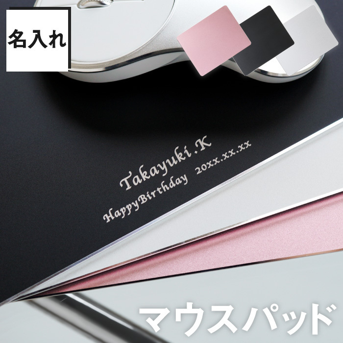 | 【名入れOK!アルミマウスパッド】 デスク周りをスタイリッシュに演出してくれるアルミマウスパッド 名前とメッセージや記念日を彫刻すれば特別な贈り物に ローマ字なら25文字まで彫刻できるのでお好きなメッセージも彫刻できます 素材は表面がアルミ合金なのでマウスがなめらかに動きます 横長タイプなのでマウスを大きく動かしたい人にもおすすめです 防水加工もされており、飲み物などをこぼした時も拭き取りやすくなっております カラーはブラック、シルバー、ピンクゴールドの3色からお選び下さい 厚さ約2mm、重さも約167gと軽量なのでノートパソコンと一緒に持ち運ぶのにも便利です 透明ラッピングなのでプレゼントをする前に彫刻をご確認いただけます 無料で同封されているギフトバッグに入れてお渡しください 名入れOK!アルミマウスパッドは 会社の同僚、上司、先輩、後輩、父、母、兄弟、友人、友達など身近な方への 送別、栄転、転職、昇進、入社、退職の記念品や 誕生日、記念日、入学祝い、卒業祝い、父の日、母の日など様々なプレゼントに♪ 名入れで世界に一つの贈り物! | |