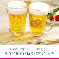 【 名入れOK! てびねりスマイルペアジョッキ 】 ■名前が入るビールジョッキに可愛いスマイルパターン♪ 仲良しカップルさんへの結婚祝いプレゼント! 結婚祝いのギフトセット、名入れで喜ばれること間違いなし! ペアセットで嬉しい送料無料♪ 取っ手付きのビアジョッキは持ち手の向きが選べて、 左利きさんもOK! さらに、厚みもあって丈夫で安心の日本製・国産製品。 ハイボールジョッキとしてもお使いいただけます♪ ■名入れで、オリジナルの特別なプレゼントに。 カワイイ♪スマイル!てびねりスマイルペアジョッキは、 友人カップルへの結婚祝いペアギフトはもちろん、 内祝いお返し、結婚式でのお父さん、お母さんへの贈り物にも◎ 父の日・母の日ペアギフト・仲良しご夫婦さんへの誕生日や記念日 のギフトにもおススメです! 名入れで世界にひとつのプレゼント! | |