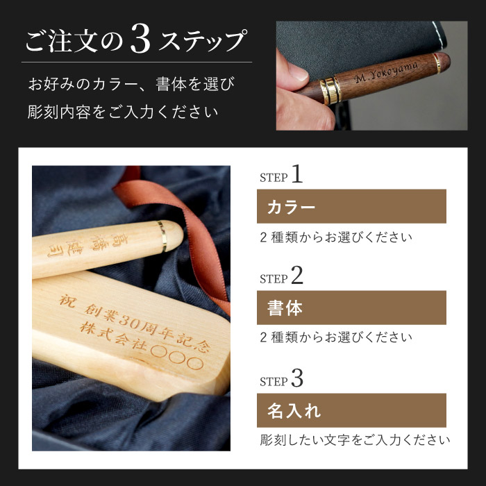| 彫刻内容 | ■文字数 [ボールペン] ローマ字:12文字まで 漢字・かな文字:6文字まで [ペンケース] ローマ字/漢字・かな文字:1行25文字2行まで※スペース(空白)も文字数に含まれます※ローマ字と日本語が混在する場合は【2.楷書体】の書体で製作いたします |