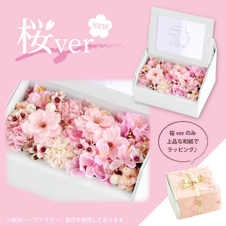 | 仕様 / サイズ | ■種類:プリザーブドフラワー ※ひとつひとつ大切に手作りしております ※自然素材をそのまま生かした花材を使用しているため写真とまったく同じ形・配置にはなりません その点、ご了承の上ご購入くださいませ ※時期により、花材が一部変更となる場合がございます ■素材:プリザーブドフラワー、ソーラーフラワー、ソープフラワー、造花 ■サイズ:縦10.5cm、横15cm、奥行約12cm(閉めた時) ■セット内容:フォトボックス、説明書、ギフトラッピング ※ラッピングのリボンは一部変更になる可能性がございます ■メッセージカード:ご希望の方は「備考欄」にご記載くださいませ ※【写真プリントサービス】を希望する方はこちらを必ずご確認ください ■写真データの送り方■ 写真のjpgデータをメールに添付してください 1.info@hanamarika.com ※メールアプリが開きます へ送信(メール本文に購入者様のお名前を記載ください) もしくは 2.お店から届く自動メールよりご返信ください 横向きの画像をお送りくださいませ。トリミングは一任くださいませ ※ソラの木を加工して作られるお花です。そのため木の茶色い部分や木目 が残っていることがありますが自然ならではのものです ※お花の痛みや色あせを早めますので、湿気・直射日光を避けてお飾りくださいませ ※さくらはソープフラワー、造花です |